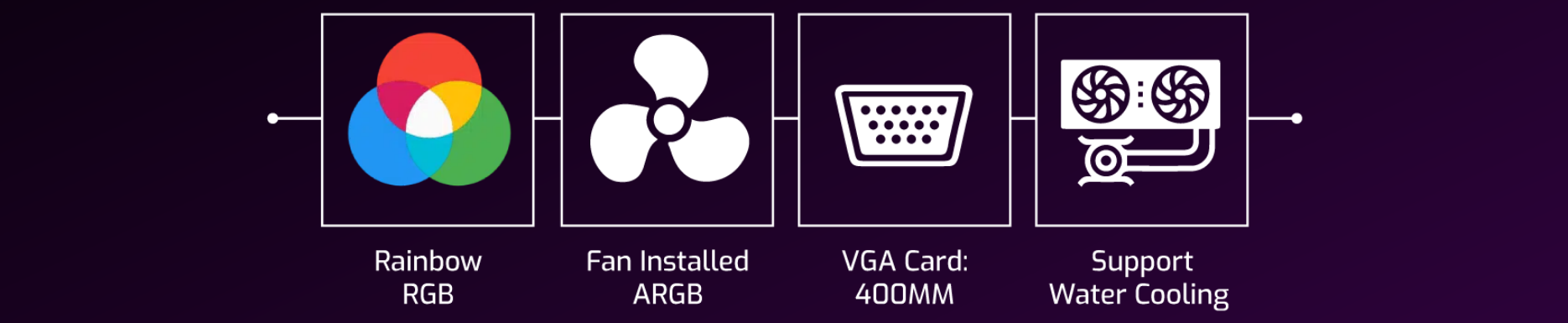Ventiladores ARGB instalados Frontal: 3 x 120 mm, Posterior: 1 x 120 mm